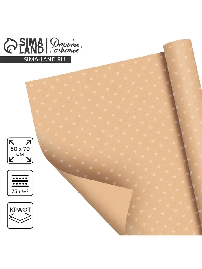 Бумага упаковочная крафтовая «Сердца», 50 х 70 см