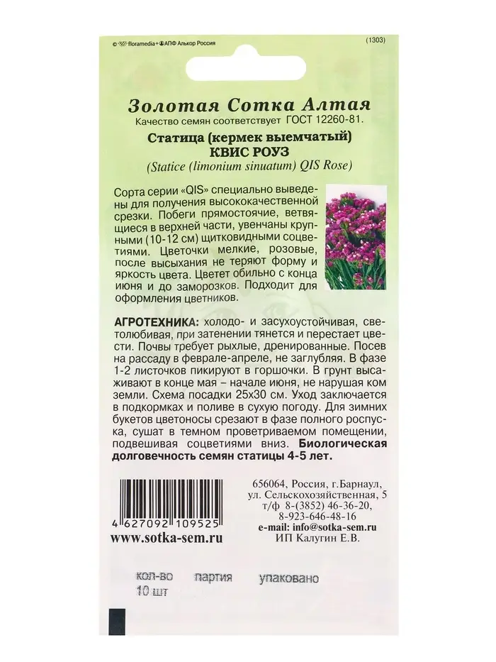 Семена Статица Квис Роуз /Сотка/ 10 шт /ПанАм/ h-70-90 см/*500
