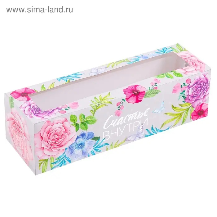 Коробка для макарун, кондитерская упаковка «Счастье внутри», 18 х 5.5 х 5.5 см