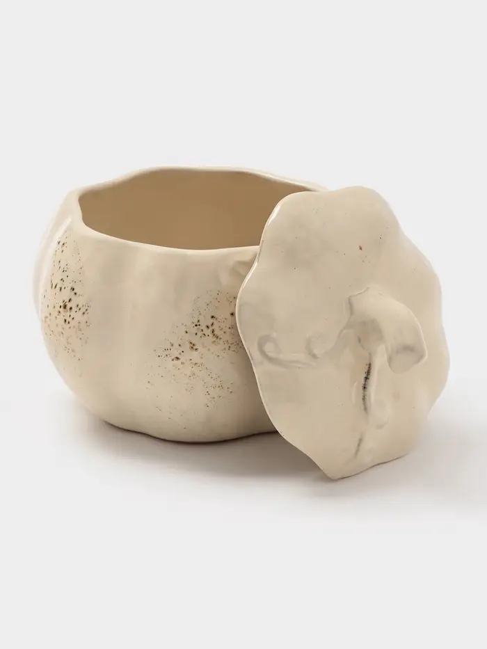 Округлая форма повторяет природные линии, создавая приятный тактильный опыт. Бежевый цвет с естественными вариациями оттенков подчеркивает ручной характер работы. Крышка плотно прилегает, предотвращая испарение жидкости. Горшок становится многофункциональным элементом кухни — от запекания овощей до приготовления крем-супов с последующей подачей на стол.