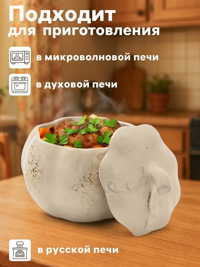 Любители эко-стиля оценят органичную форму, напоминающую натуральный продукт. Практичные кулинары найдут удобным приготовление порционных блюд с сохранением всех соков. Ценители авторской посуды используют горшок как сервировочную емкость, подавая блюда прямо в форме запекания.