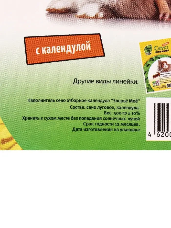 Почему это больше, чем просто наполнитель: Зелёный цвет и свежий аромат говорят о своевременной заготовке и правильной сушке — сено сохранило клетчатку, витамины и структуру. Календула привлекает внимание животных, стимулирует аппетит и обогащает рацион. «Зверьё Моё» с календулой — выбор заботливых владельцев, которые хотят дать питомцу не просто «траву», а функциональный продукт, приближённый к естественной среде обитания.