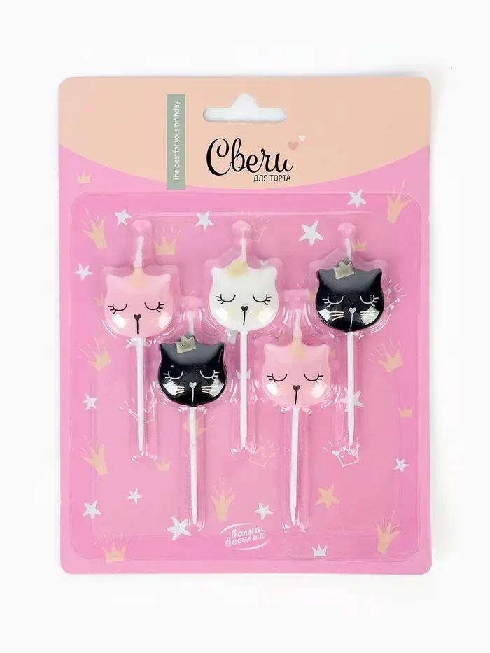 Набор свечей для торта «Котенок Принцесса», металлик, 6 см, 5 шт