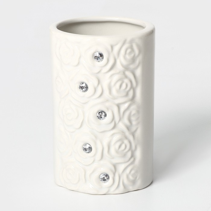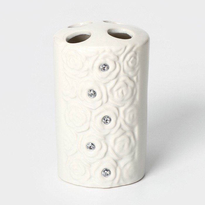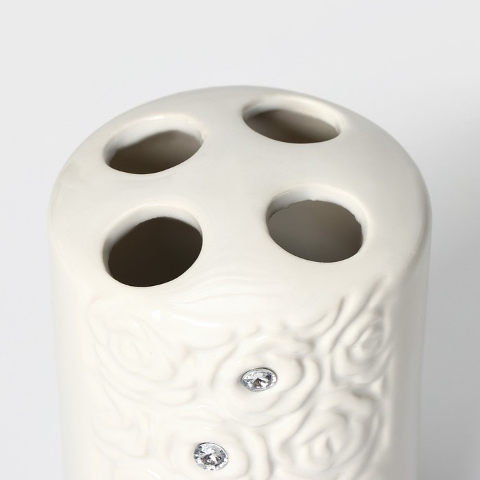 Набор аксессуаров для ванной комнаты Доляна «Барельеф», 4 предмета (дозатор 280 мл, мыльница, 2 стакана), цвет бежевый
