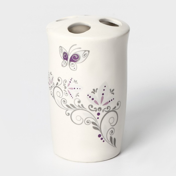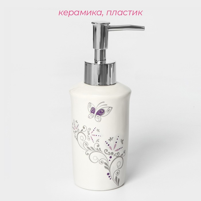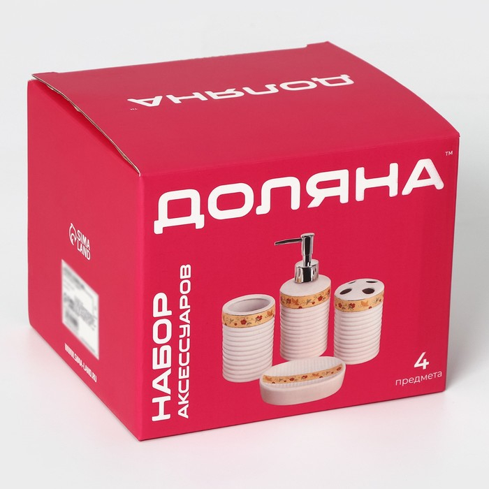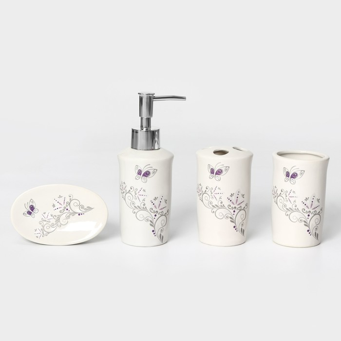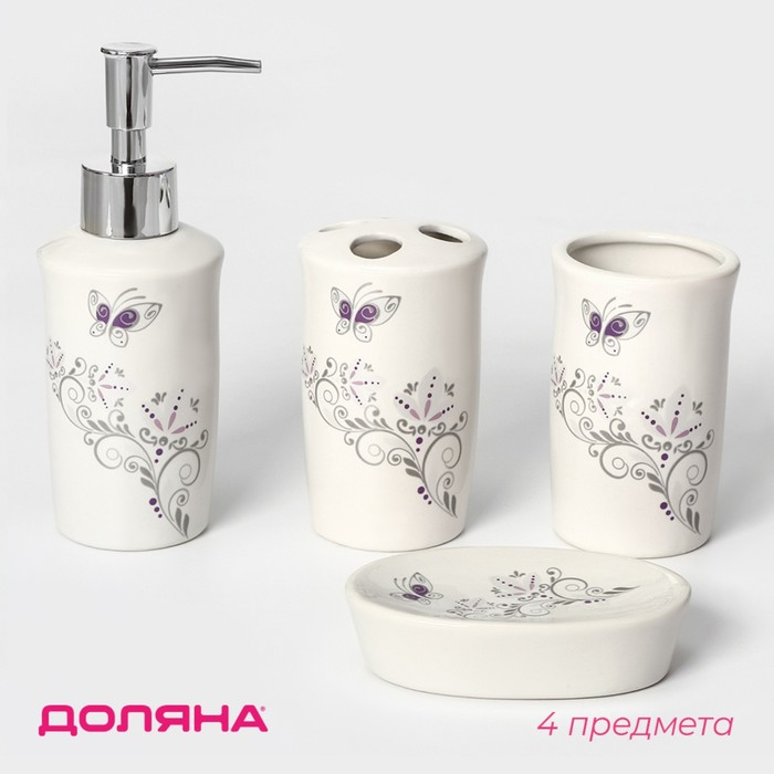 Набор аксессуаров для ванной комнаты Доляна «Изящество», 4 предмета (дозатор 250 мл, мыльница, 2 стакана), цвет белый
