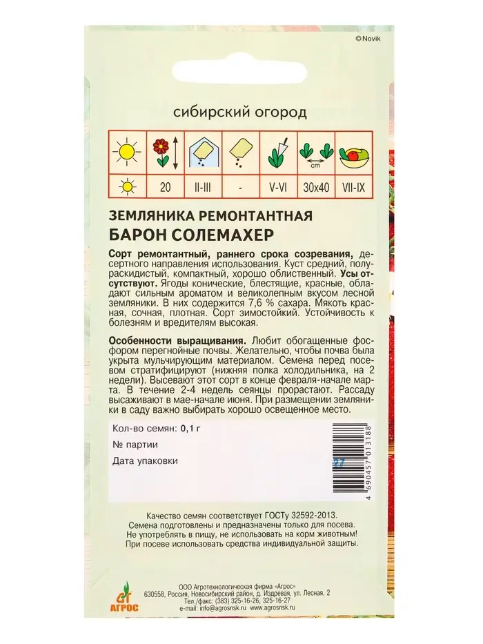 Семена Земляника ремонтантная "Барон Солемахер" 0,1 г