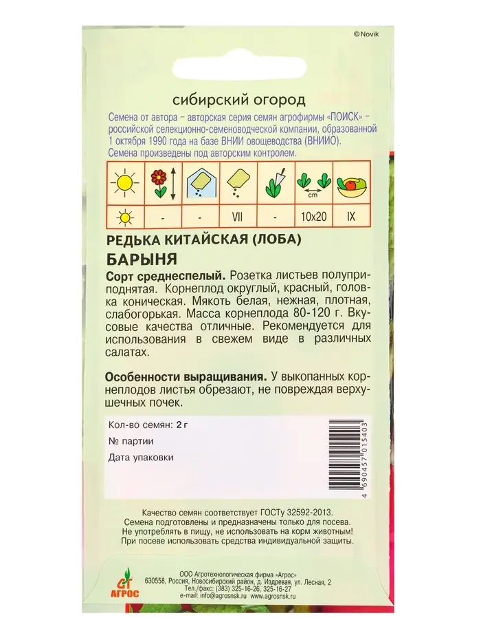Семена Редька "Барыня" 2 г