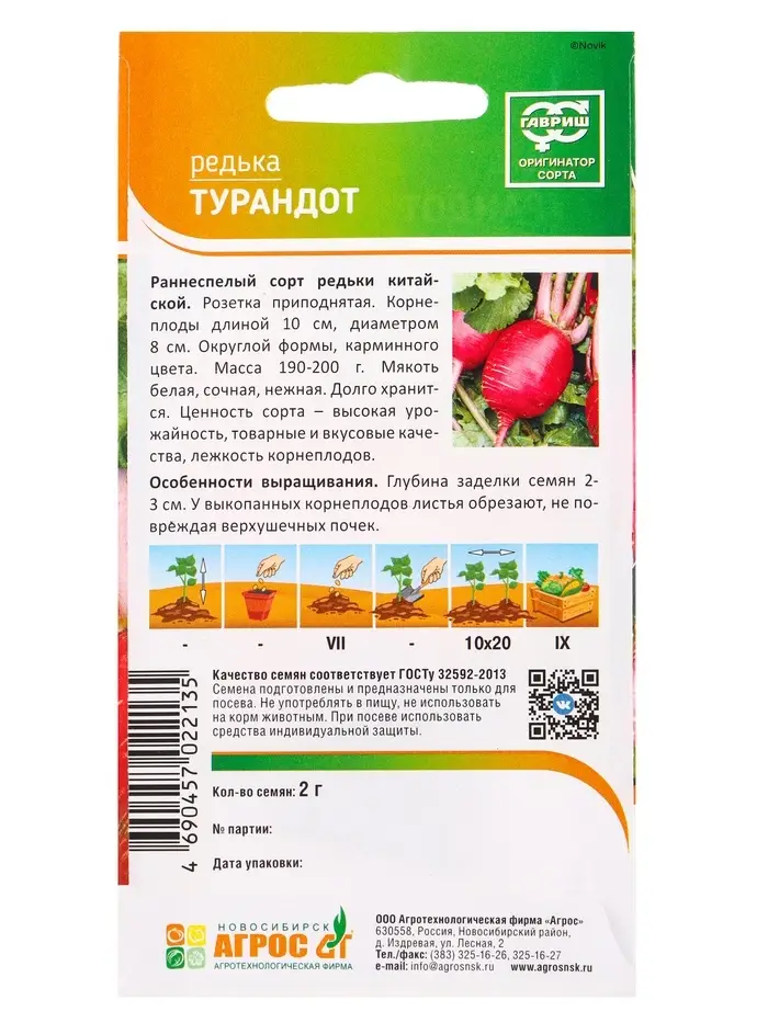Семена Редька "Турандот" 2 г