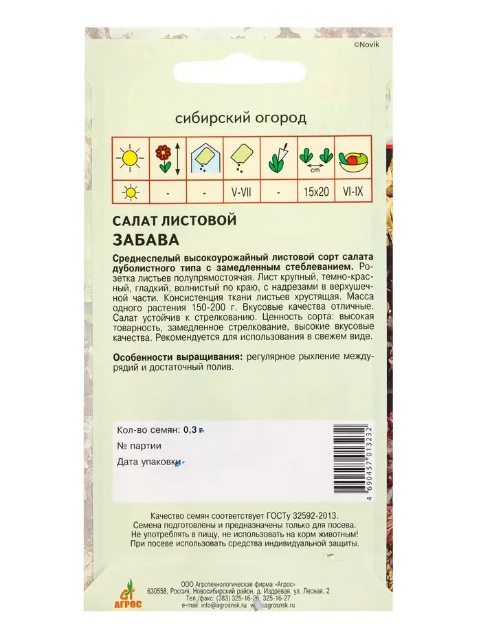 Семена Салат "Забава" 0,3 г