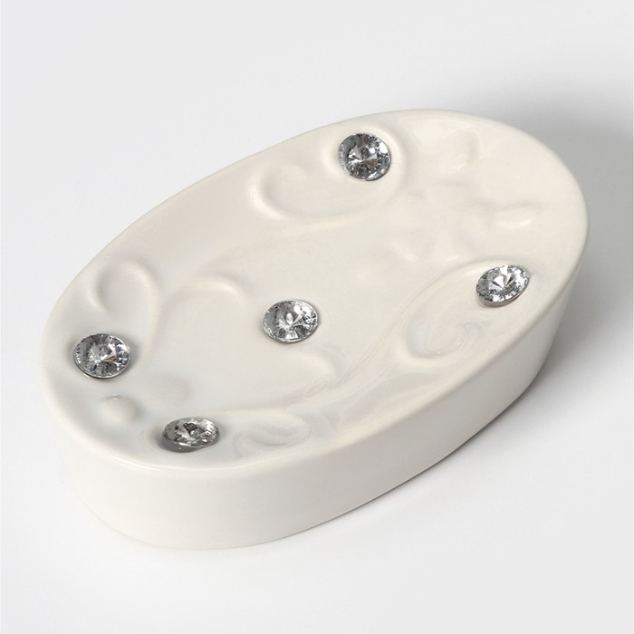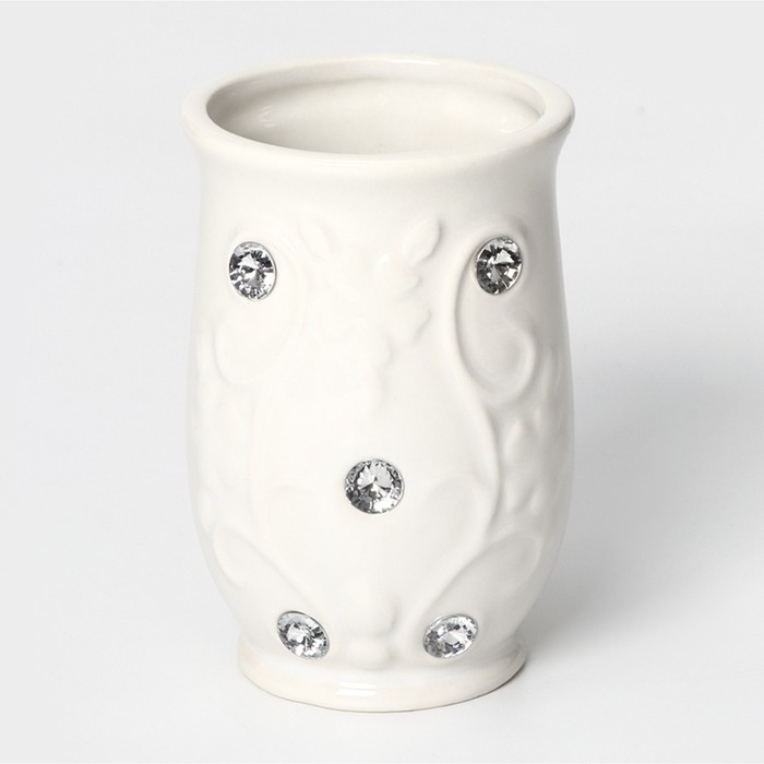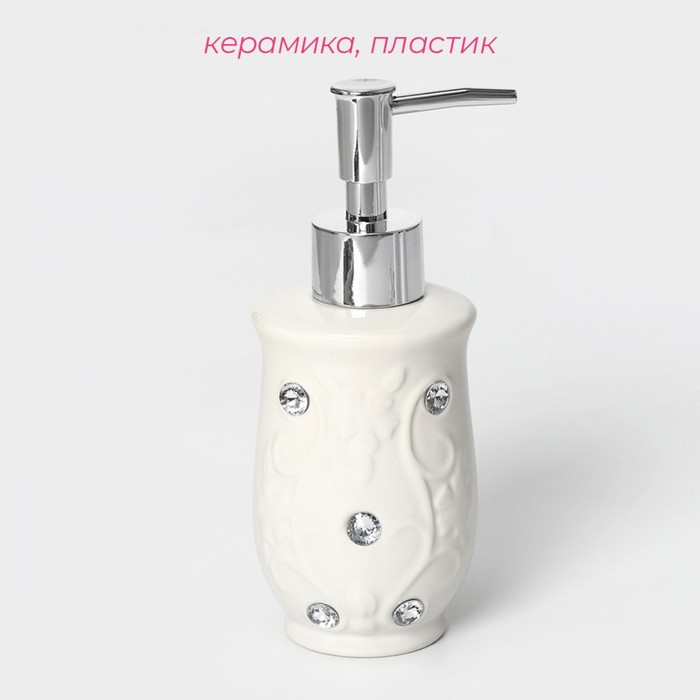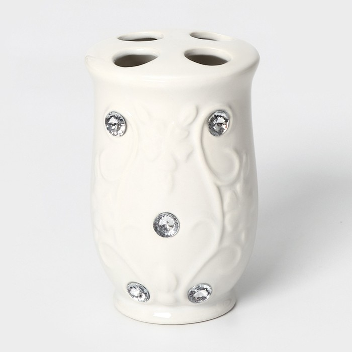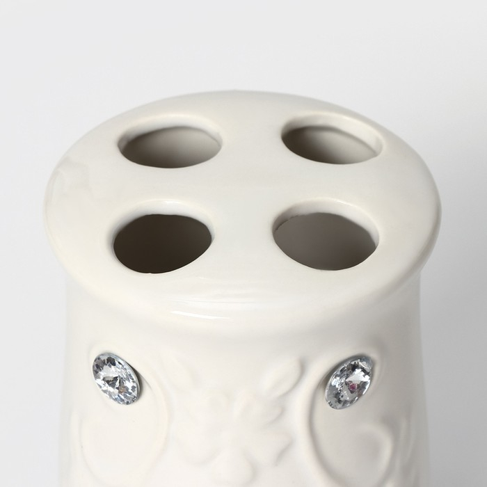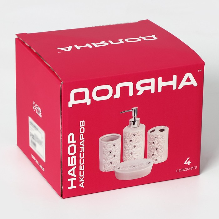 Набор аксессуаров для ванной комнаты Доляна «Изящный барельеф», 4 предмета (дозатор 250 мл, мыльница, 2 стакана), цвет белый