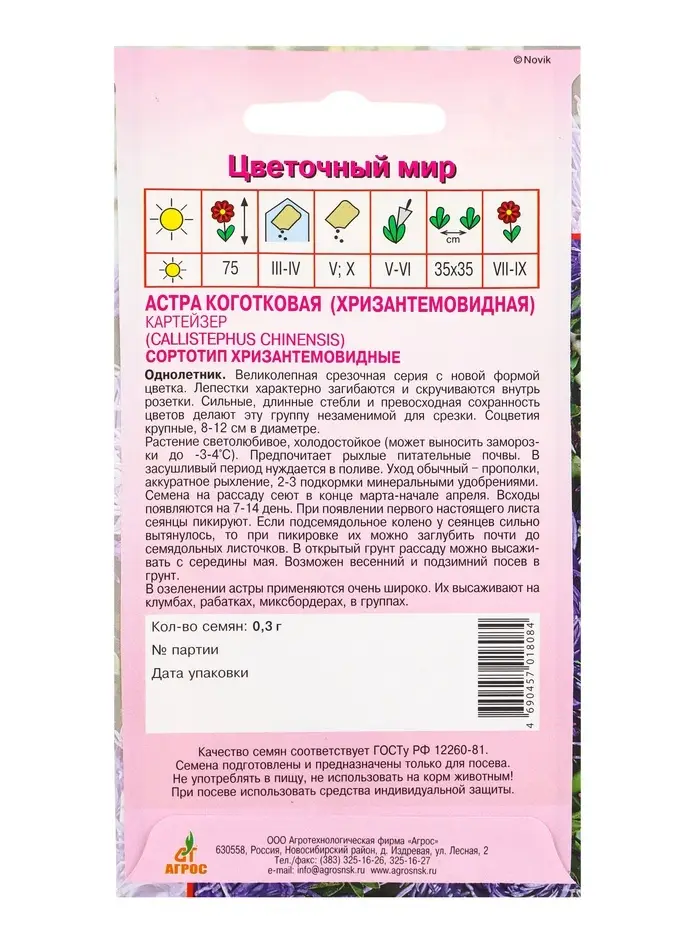 Семена цветов Астра "Седая Дама", красная, карликовая, Сем. Алт, ц/п, 0,1 г Семена цветов Астра "Седая Дама", красная, карликовая, Сем. Алт, ц/п, 0,1 г