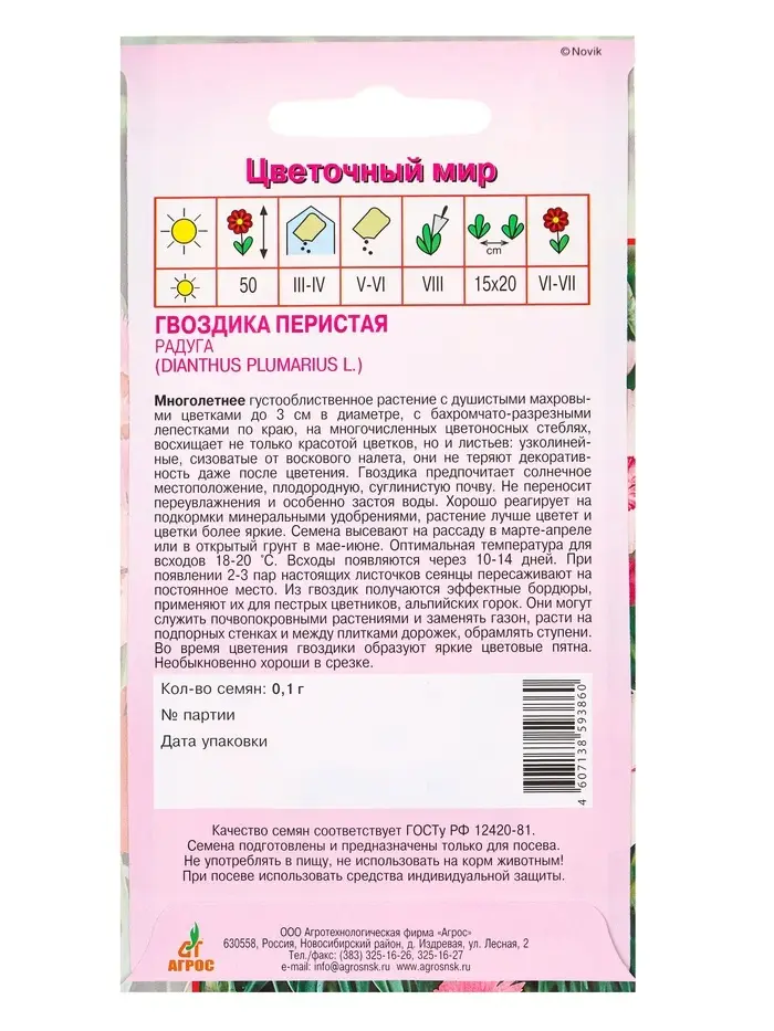 Семена Гвоздика Перистая Радуга 0,1 г