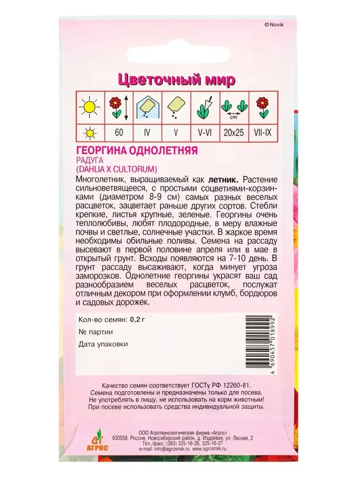 Семена Георгина Радуга 0,2 г