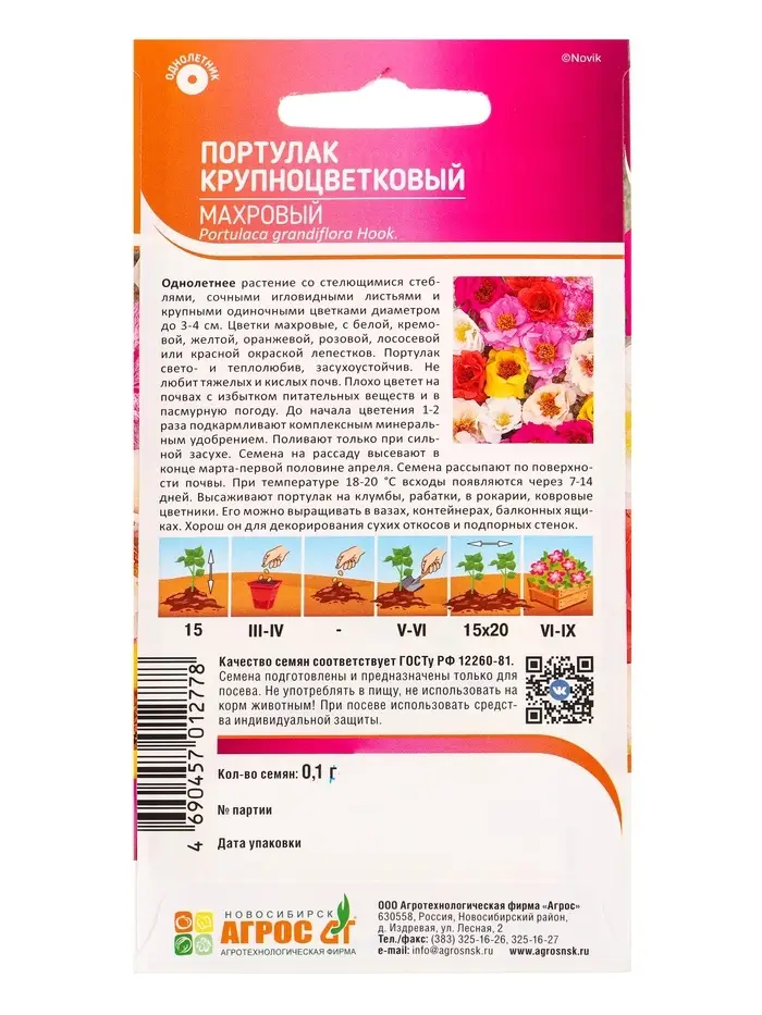 Семена Портулак Крупноцветковый Махровый 0,1 г