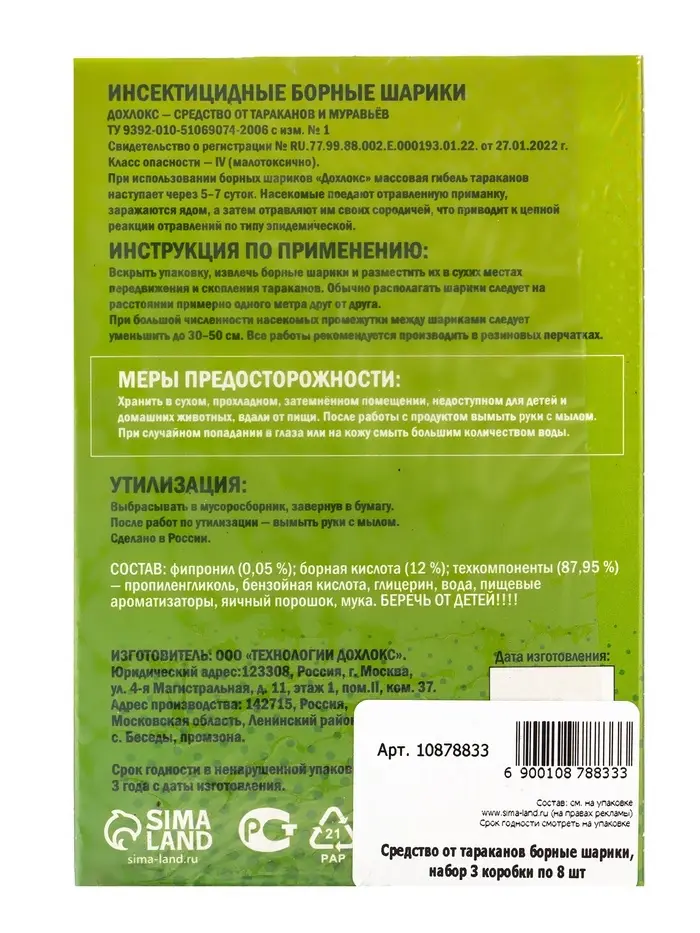 Средство от тараканов борные шарики, набор 3 коробки по 8 шт