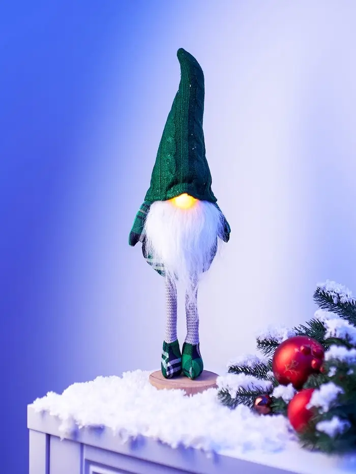 Фигура текстиль «Гном в зелёном» 54 см, 1 LED, от батареек AG13×3, свечение тёплое белое