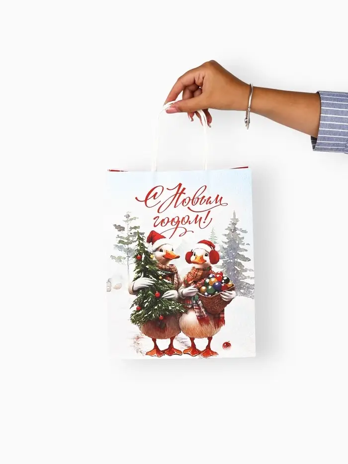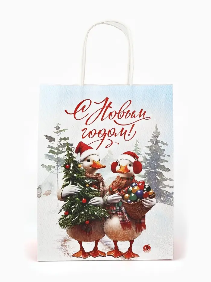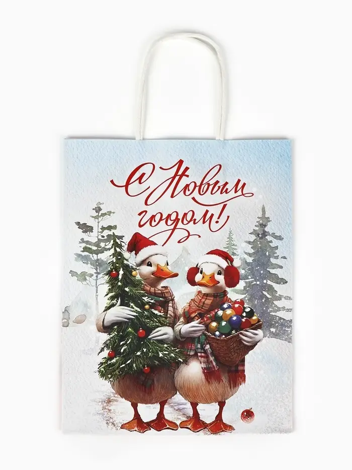 Набор пакетов крафтовых «С Новым счастьем!», 10 шт, 21 × 27 × 11 см