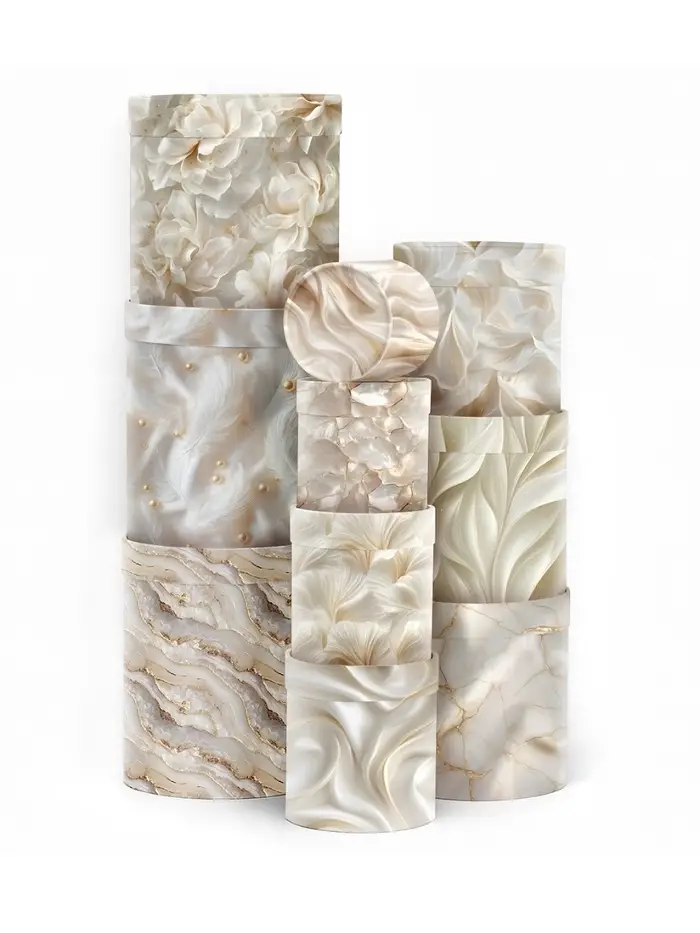 Набор подарочных круглых коробок 10 в 1 «Бело-золотой», 10 х 10 - 23,5 х 23,5 см
