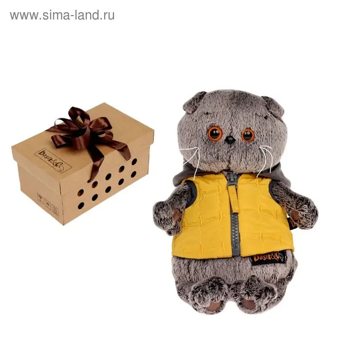 Мягкая игрушка "Басик" в желтой жилетке с серым капюшоном, 22 см