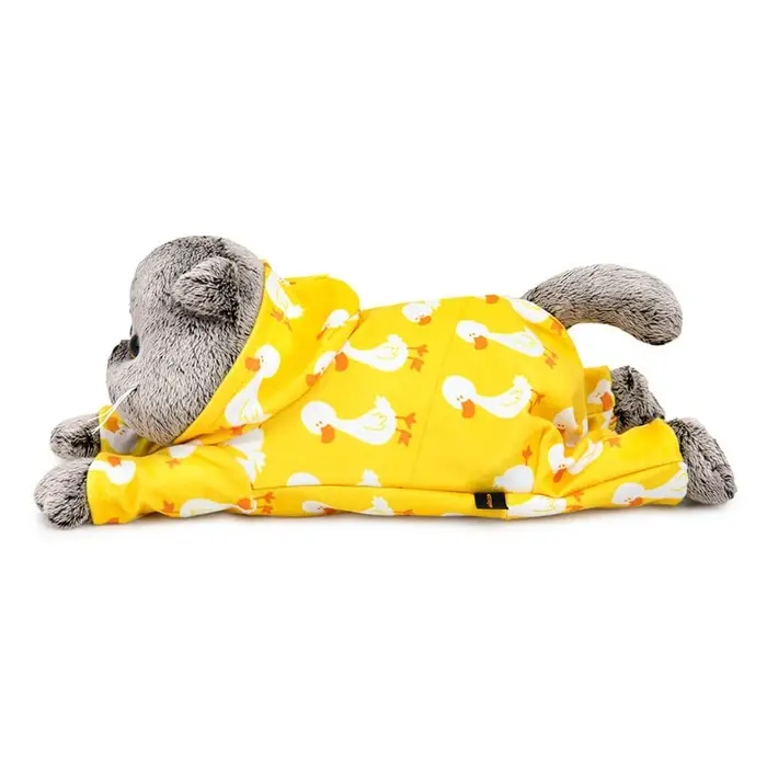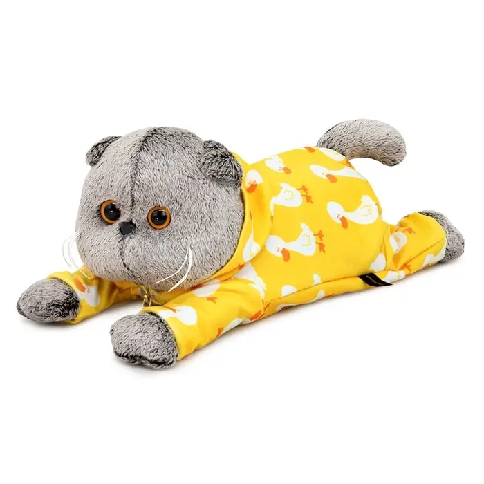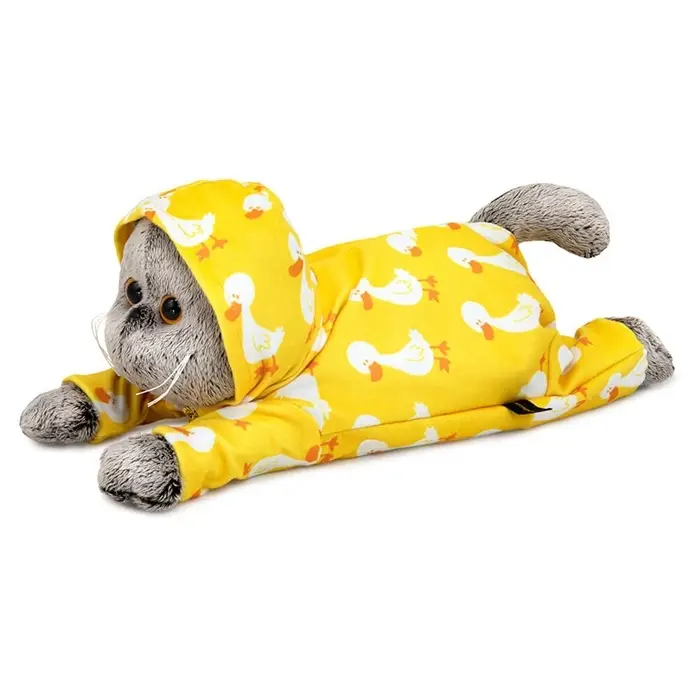 Мягкая игрушка "Кот Басик в комбинезоне с принтом "Гусик" лежачий, 25 см Kl25-003