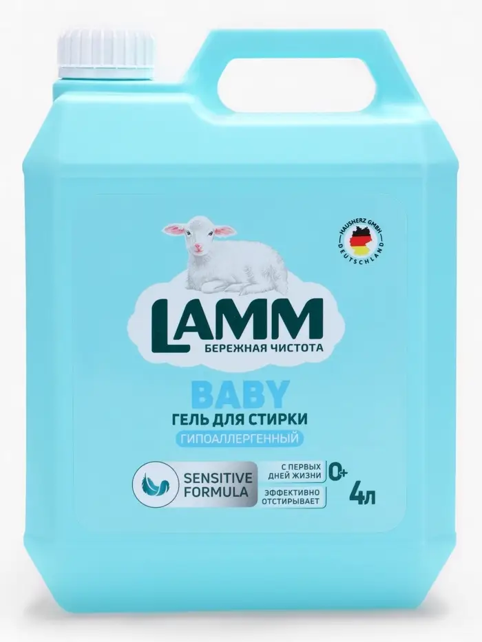 Гель для стирки LAMM Детский обладает нежным, свежим ароматом, который сохраняет бельё приятно пахнущим после стирки, не раздражая дыхательные пути и кожу ребёнка.