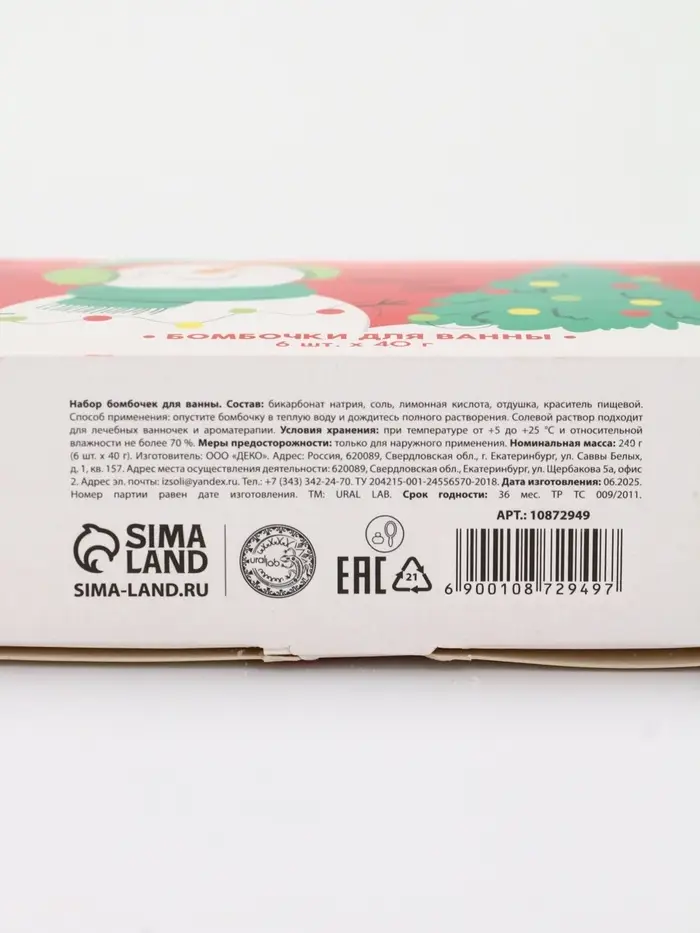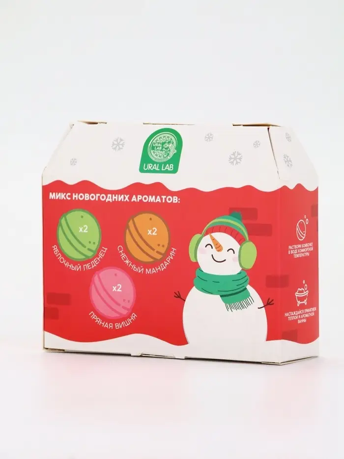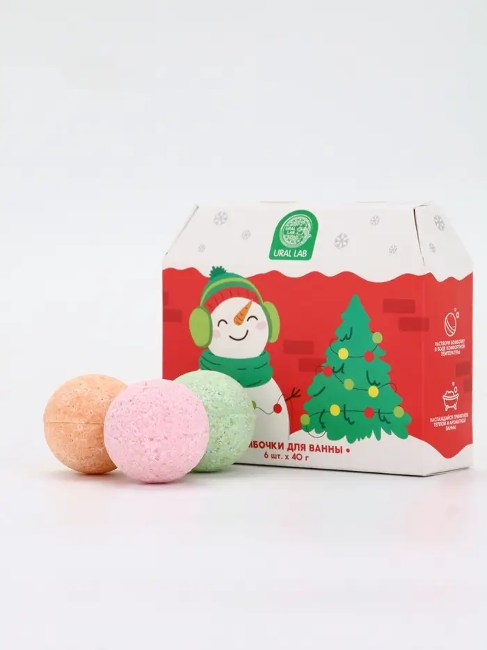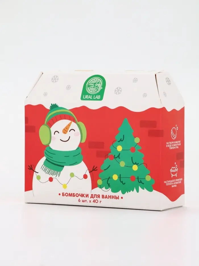 Бомбочки для ванны в домике «Снеговик», набор 6 шт х 40 г, URAL LAB
