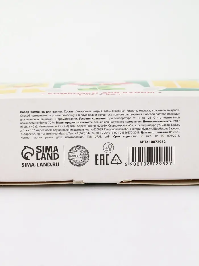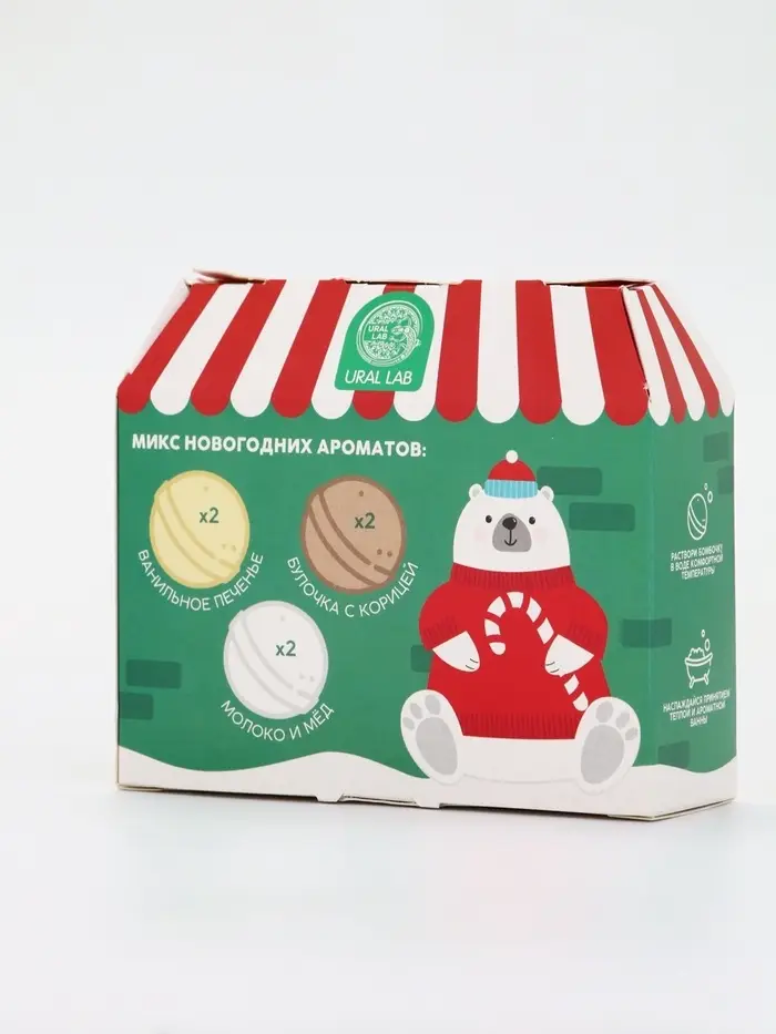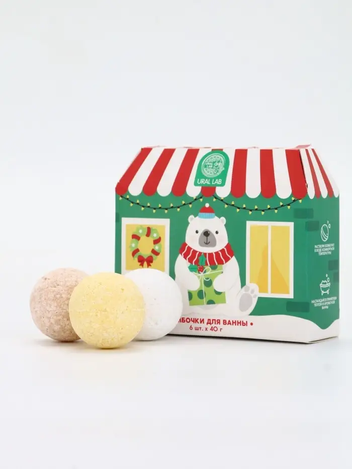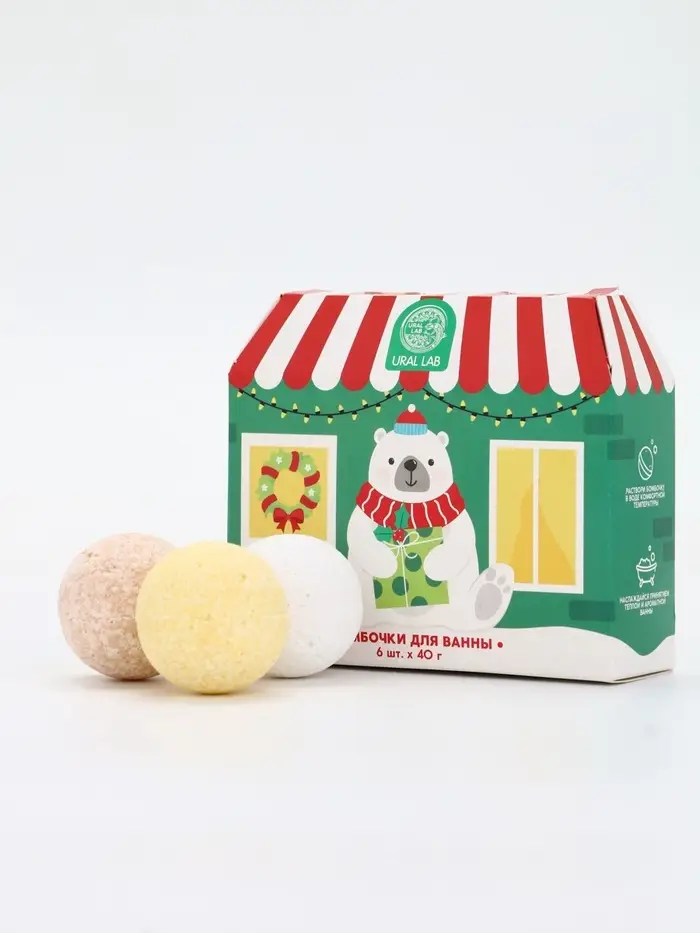 Бомбочки для ванны в домике «Медведь», набор 6 шт х 40 г, URAL LAB