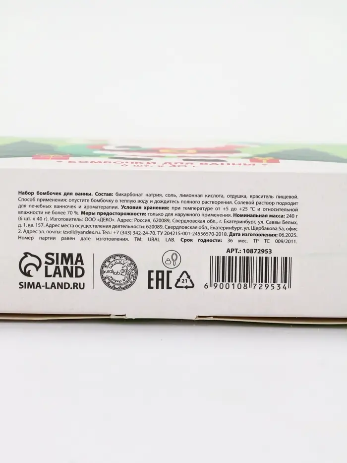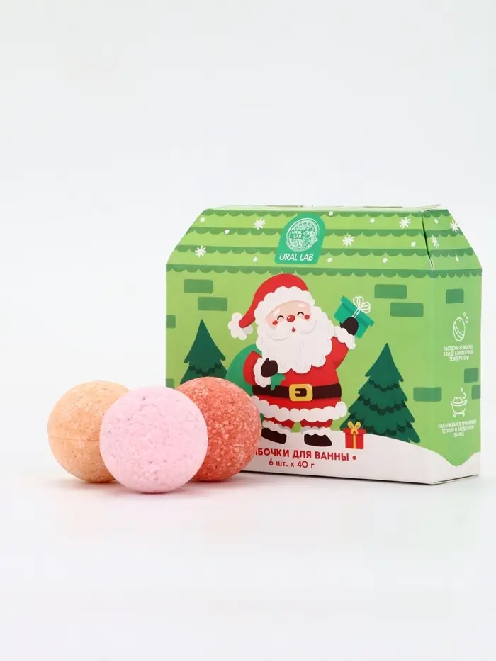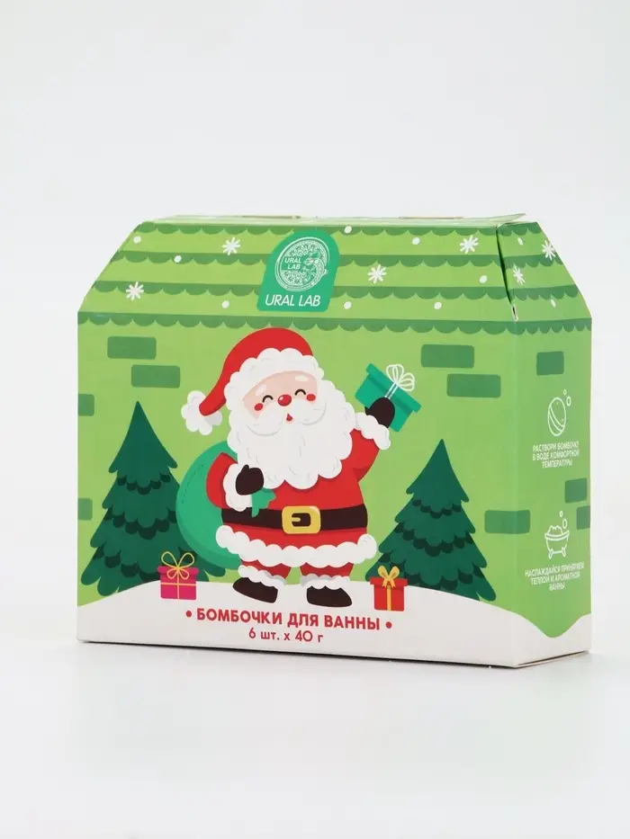 Бомбочки для ванны в домике «Дед Мороз», набор 6 шт х 40 г, URAL LAB