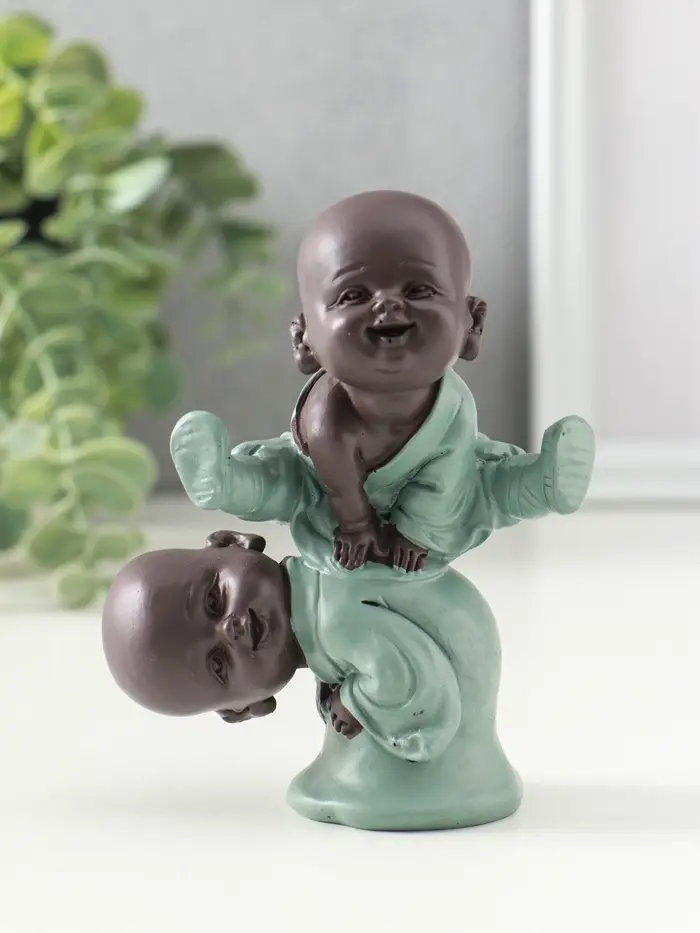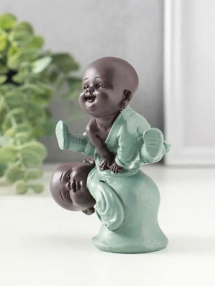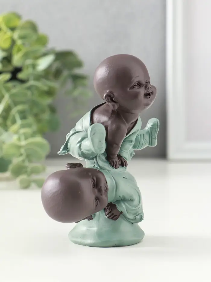 Сувенир полистоун "Маленькие будды - игра в чехарду" зелёно-коричневый 4,7х9,3х11 см