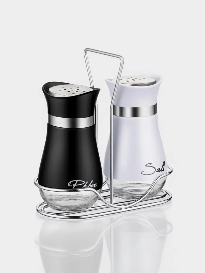 Набор для специй "Сияние.Black/White", 2 шт, на подставке