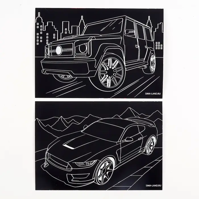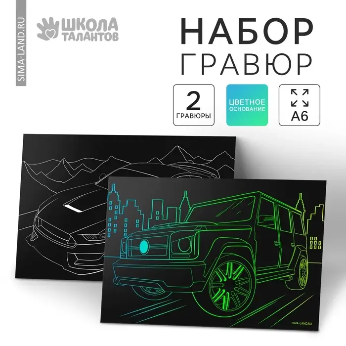 Гравюра детская «Крутые машины», 2 шт., 10×15 см