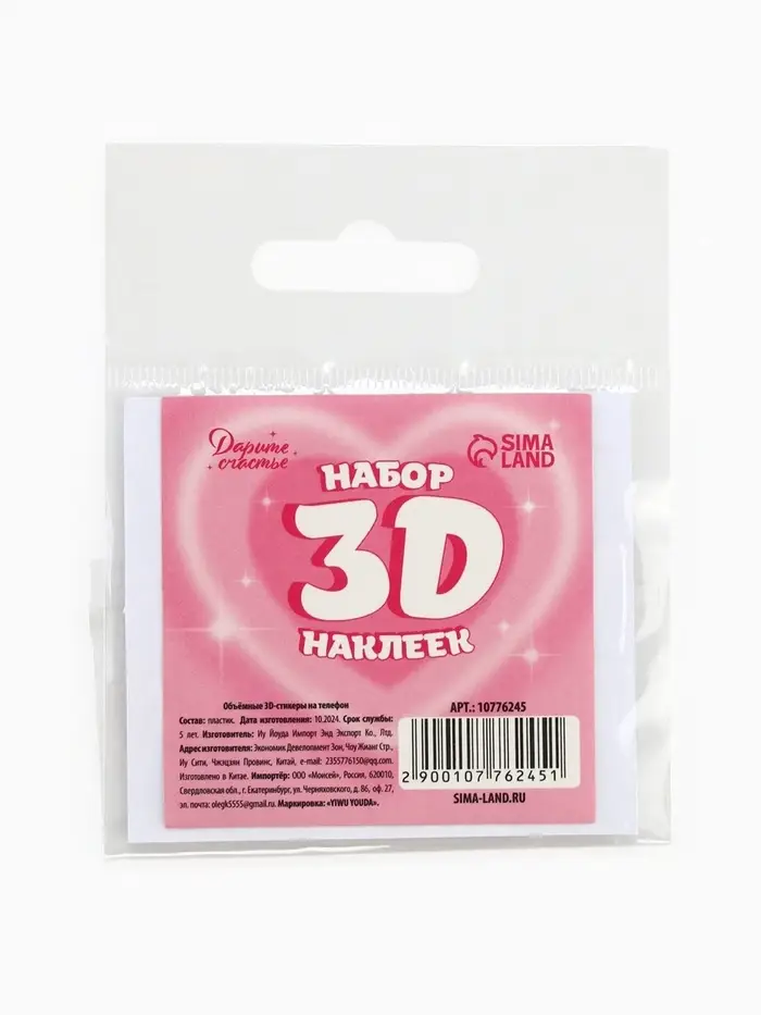 Объёмные 3D стикеры на телефон «Сердца», 4 шт., 3×3 см