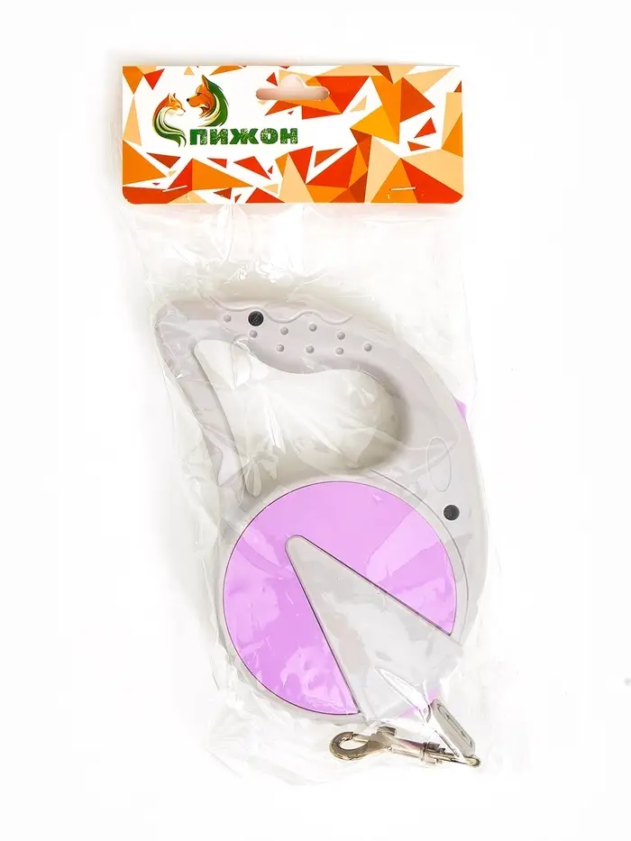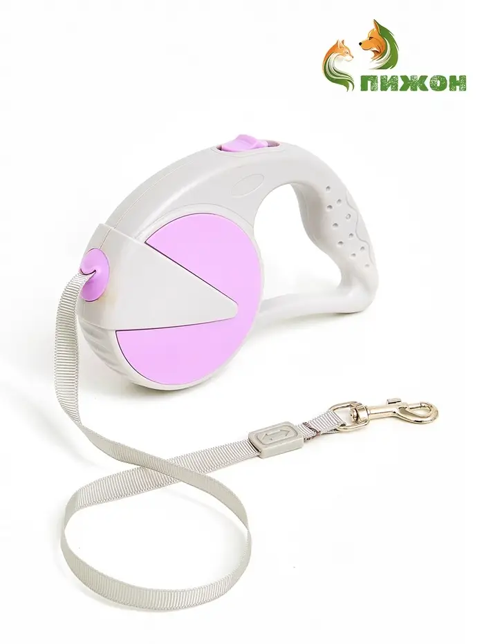 Рулетка - поводок для собак, лента 3 м, серая/сиреневая