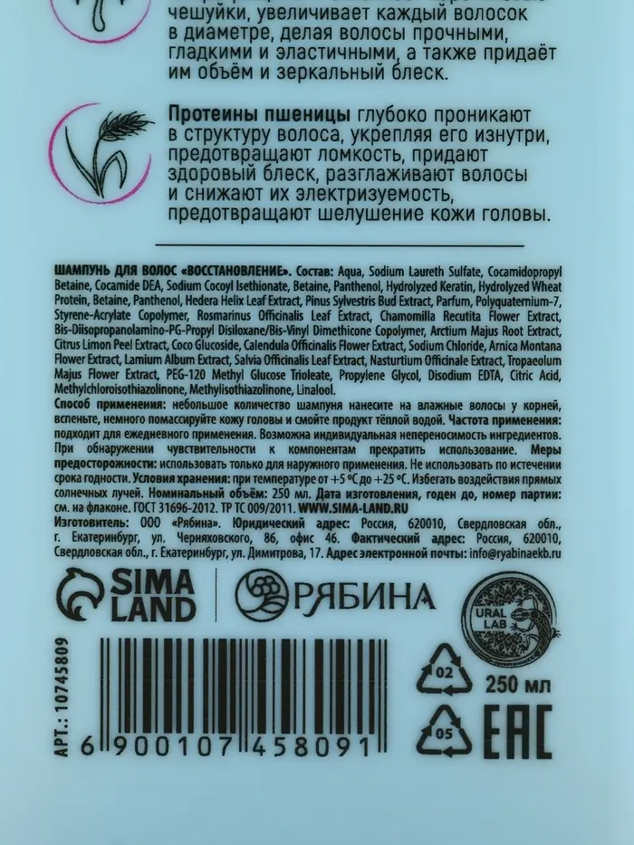 Подарочный набор «Восстановление»: шампунь 250 мл, бальзам 250 мл, URAL LAB