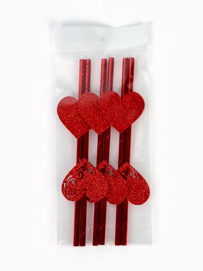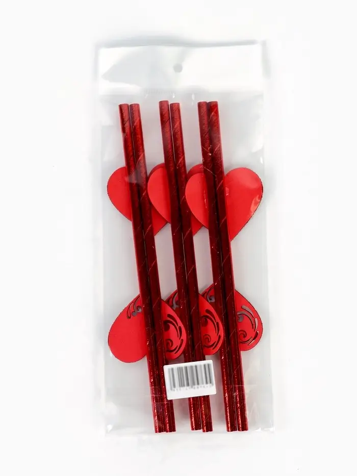 Трубочки для коктейля «Сердечки», красные, 6 шт