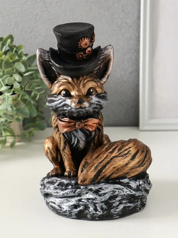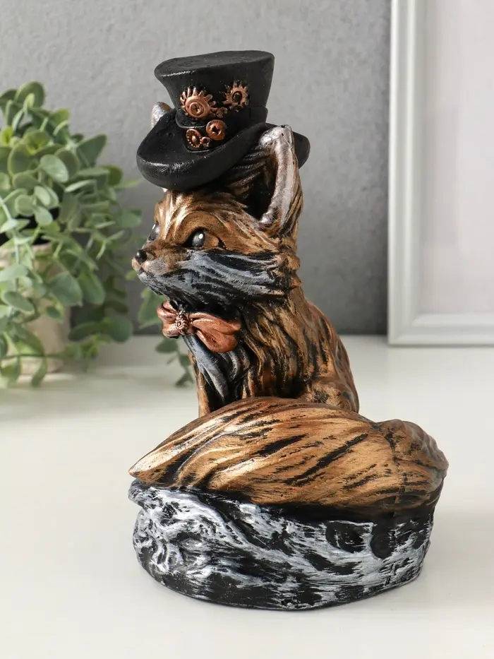 Копилка "Лиса в шляпе" 24х15 см, бронза с серебром