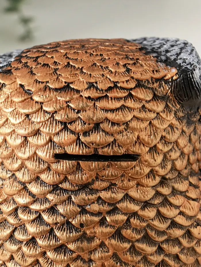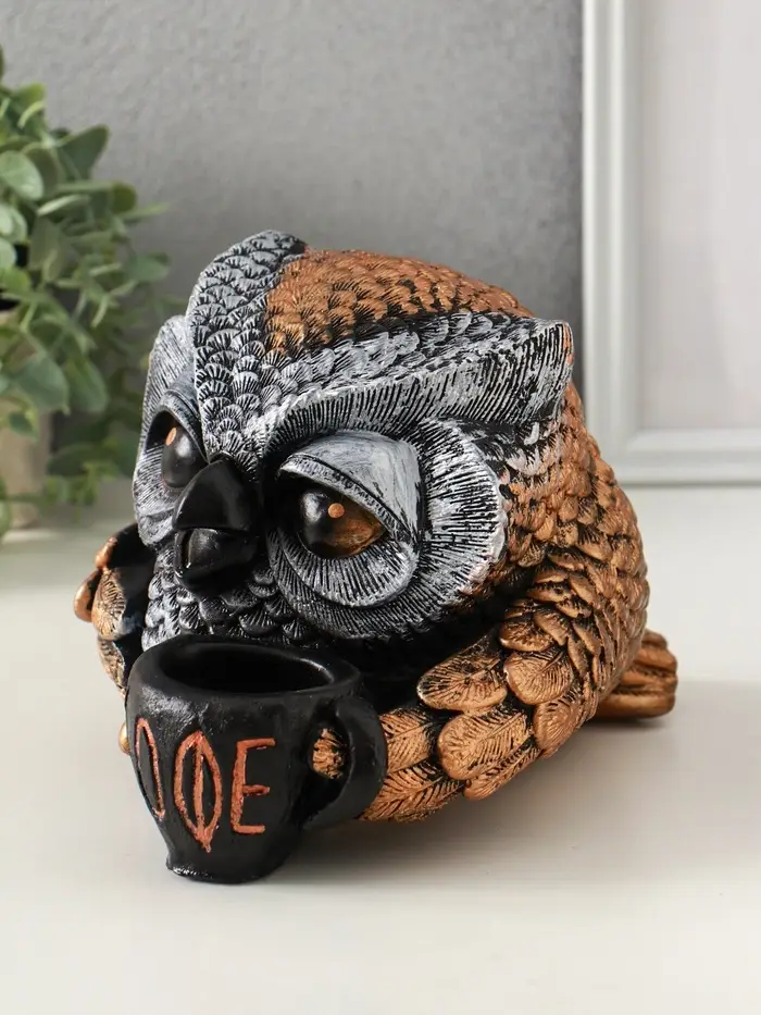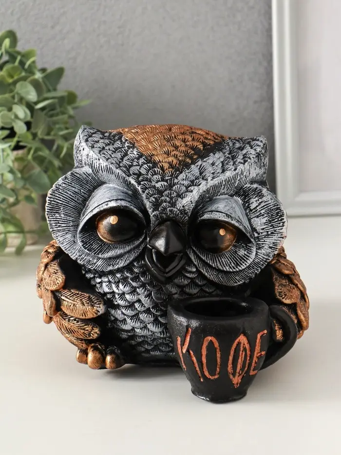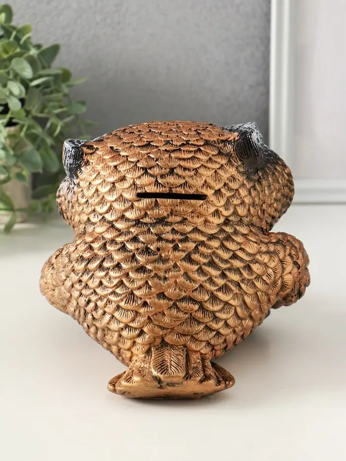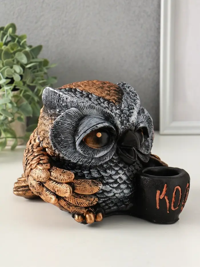 Копилка "Сова с чашкой" 15х18 см, бронза с серебром