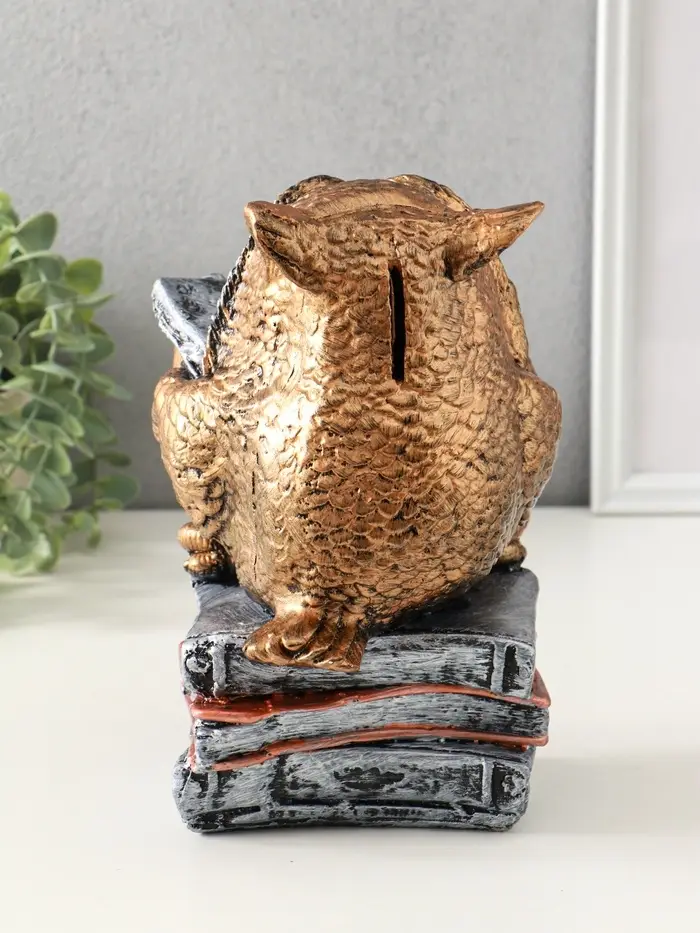 Копилка "Сова с книгой" 25х18 см, бронза с серебром