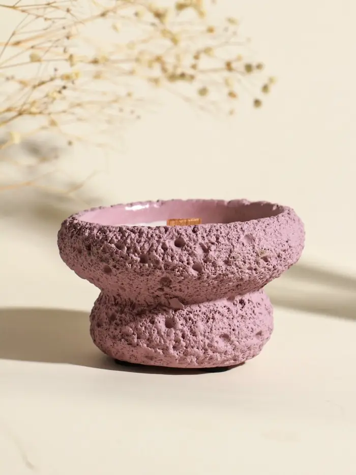 Свеча в вулканическом подсвечнике "Чаша" деревянный фитиль, розовая 9,3х9,3х5,5 см