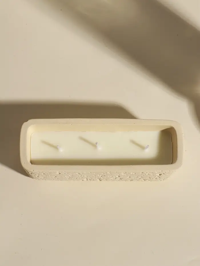 Свеча в вулканическом подсвечнике "Ящик" 3 хлопковых фитиля, белая 5,2х15х4,7 см