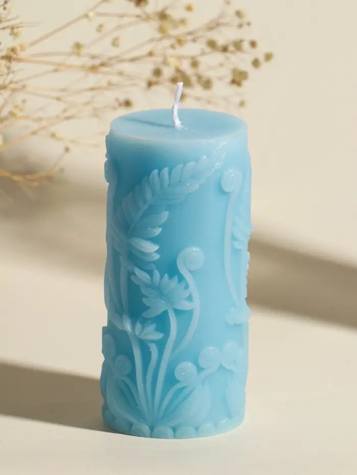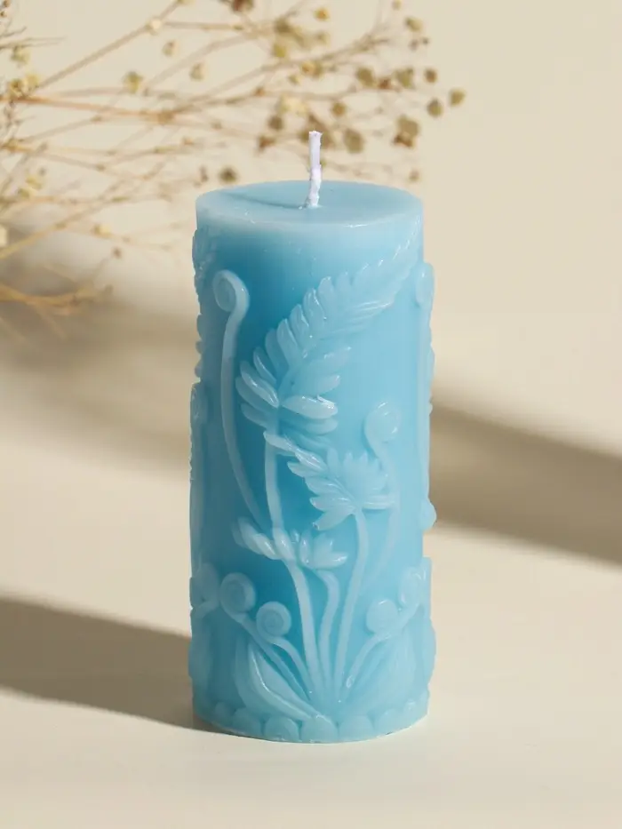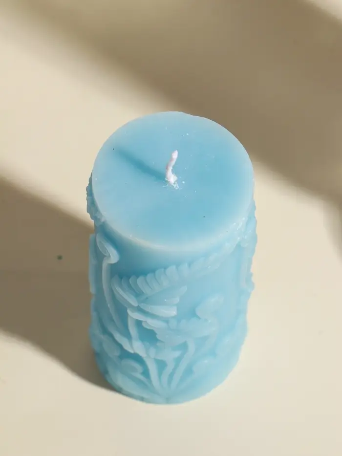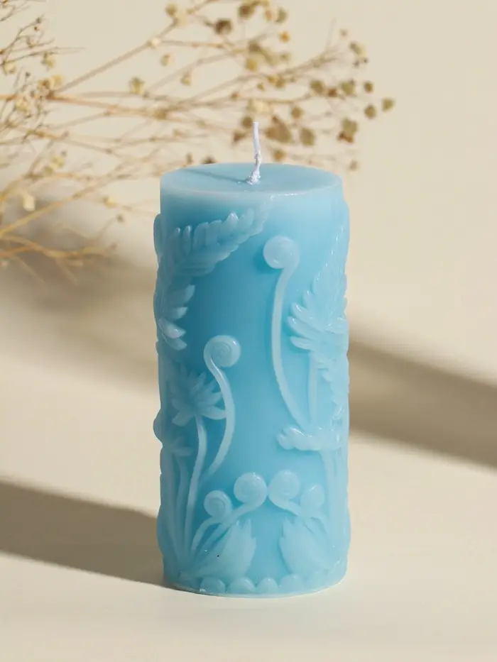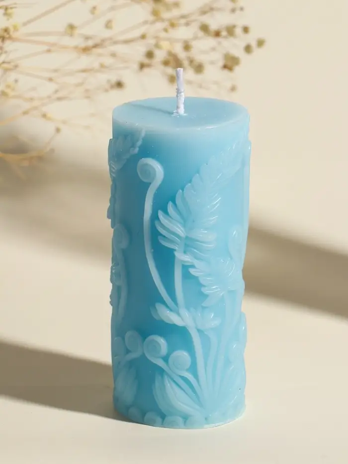 Свеча интерьерная "Столбик. Экзотические растения" нежно-голубая 5х5х11,7 см