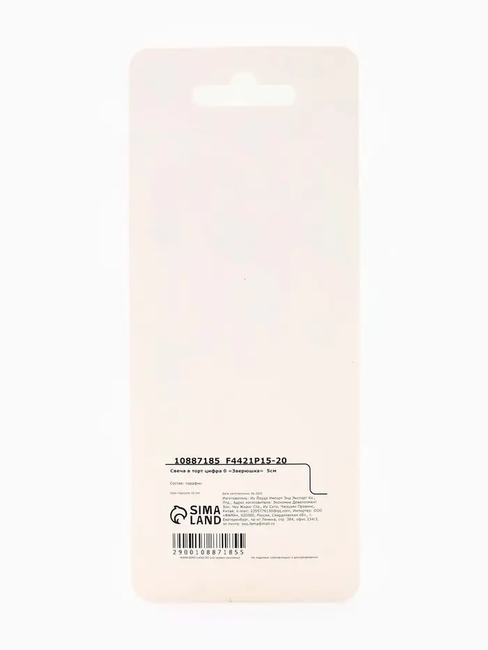Свеча для торта цифра 0 «Зверюшка», 5см