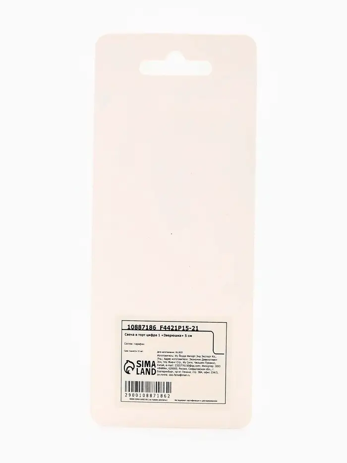 Свеча для торта цифра 1 «Зверюшка», 5 см
