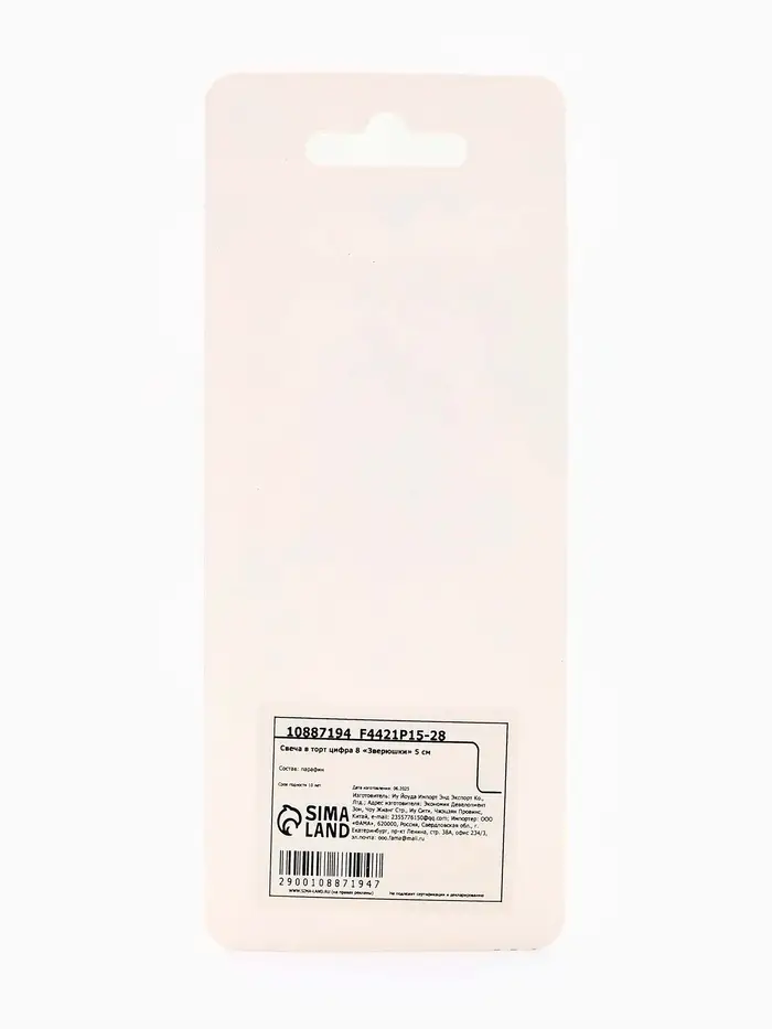 Свеча для торта цифра 8 «Зверюшки», 5 см
