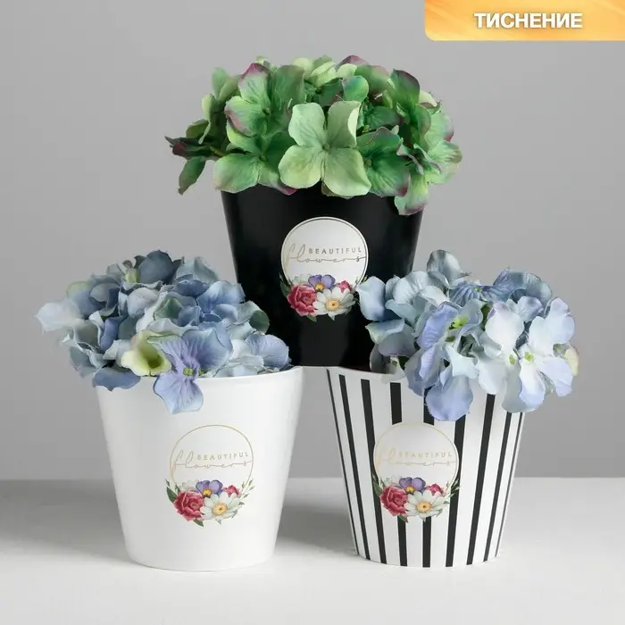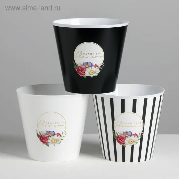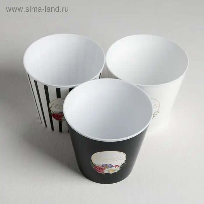 Набор кашпо для цветов 3 в 1 «Beautiful», тиснение, 0,8 л, 11 х 12 см