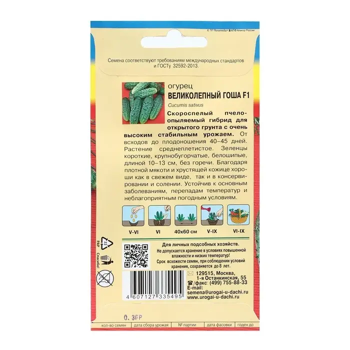 Семена Огурец "ВЕЛИКОЛЕПНЫЙ ГОША F1", 0,3 г