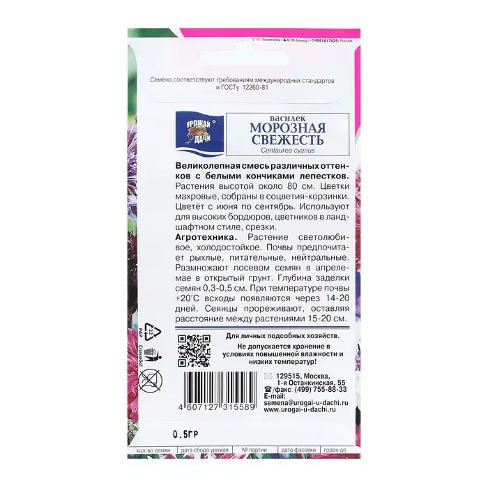 Семена цветов Василек "МОРОЗНАЯ СВЕЖЕСТЬ", 0,5 г