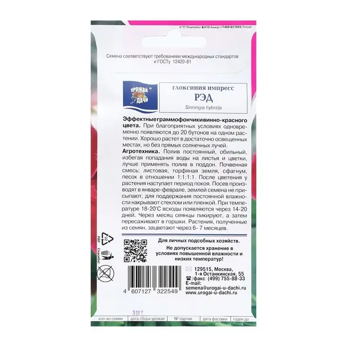 Семена цветов Глоксиния "Импресс Рэд", 3 шт. в амп.