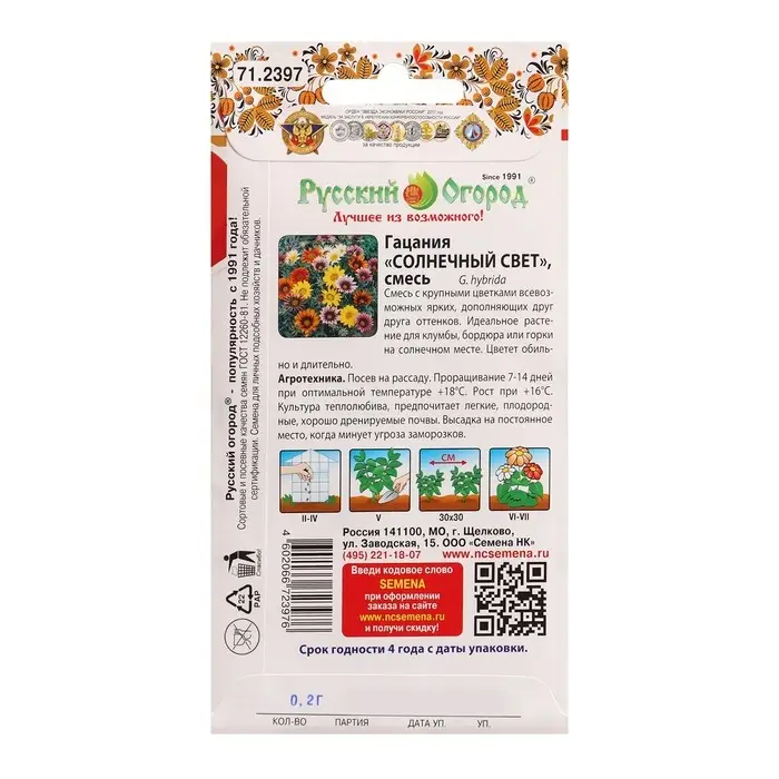 Семена Цветы Гацания Солнечный свет смесь 0,2 г