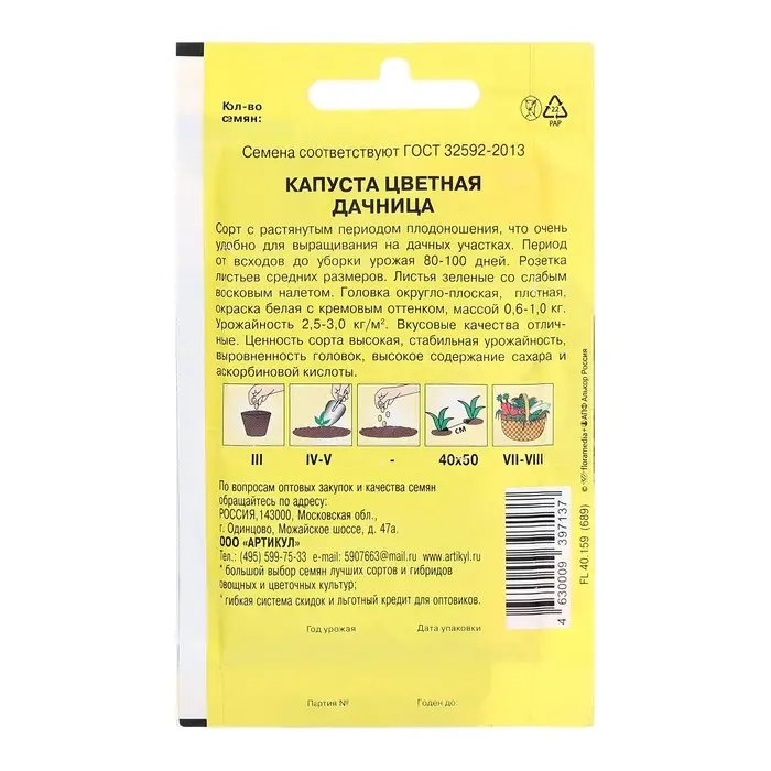 Семена Капуста цветная "Дачница", 0,3 г